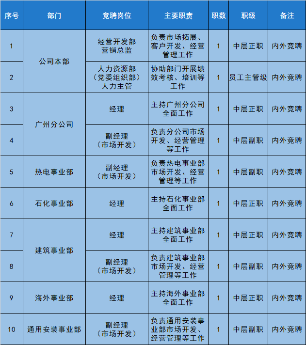 安裝公司管理崗位公開競(jìng)聘公告